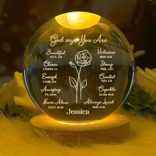 God Says You Are - Personalized Wooden Base Crystal Lamp