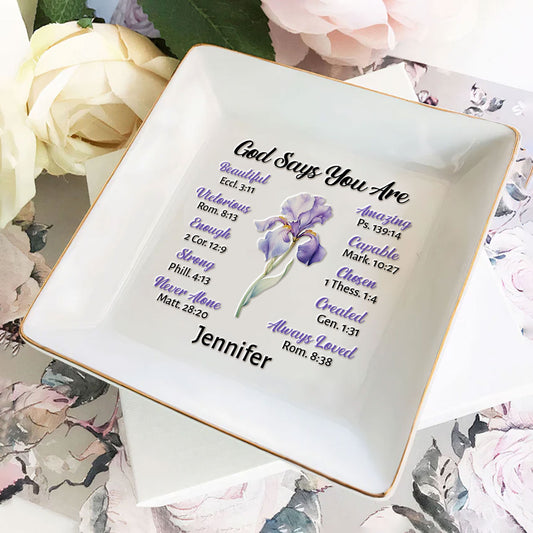 God Says You Are - Personalized Square Shaped Jewelry Dish