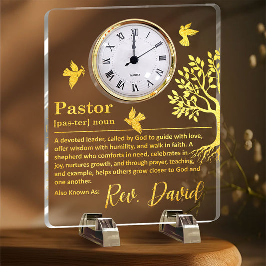 Guided By Faith Pastor - Personalized Acrylic Desk Clock