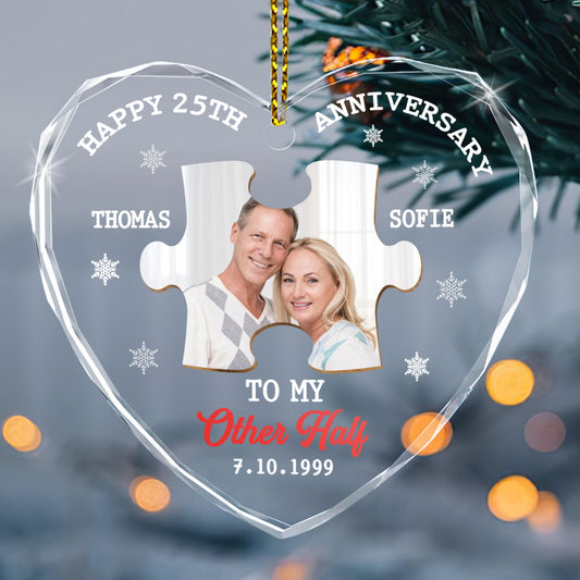 Happy Anniversary To My Other Half - Personalized Heart Shaped Glass Ornament FCHGOLEHA2729TA