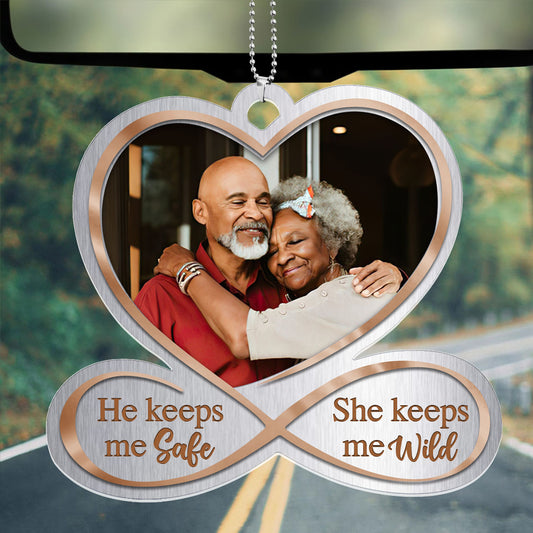 He Keeps Me Safe She Keeps Me Wild - Personalized 1-Side Car Acrylic Hanging Ornament