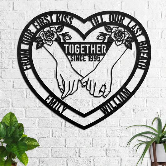 Holding Hands Forever - Personalized Metal Wall Art Sign