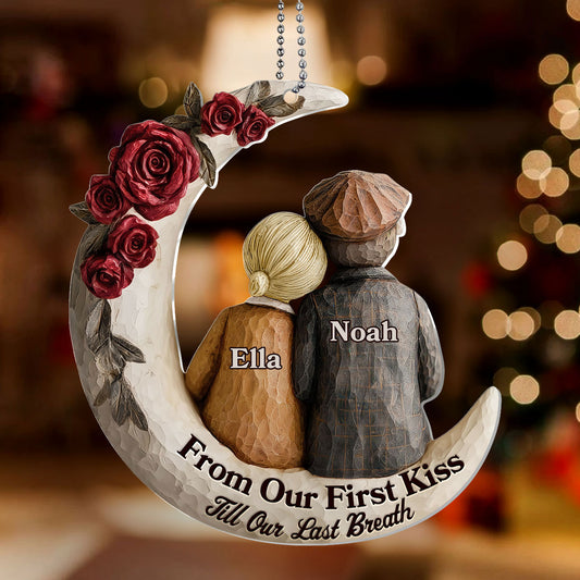 Eternal Embrace On The Crescent Moon - Personalized 1-Layer Acrylic Ornament