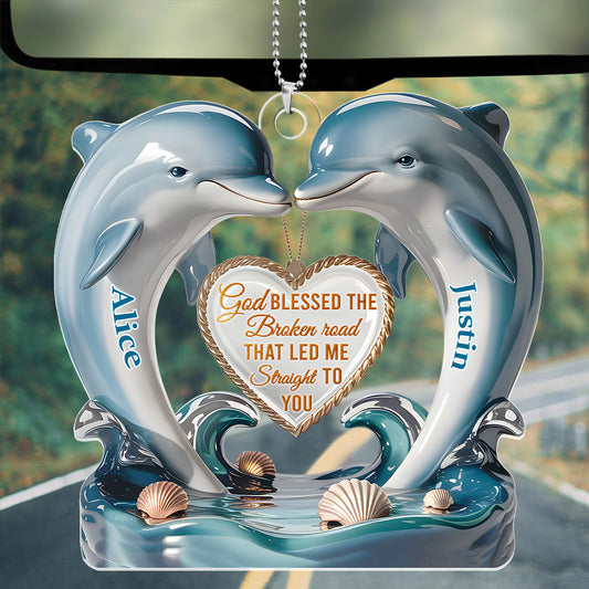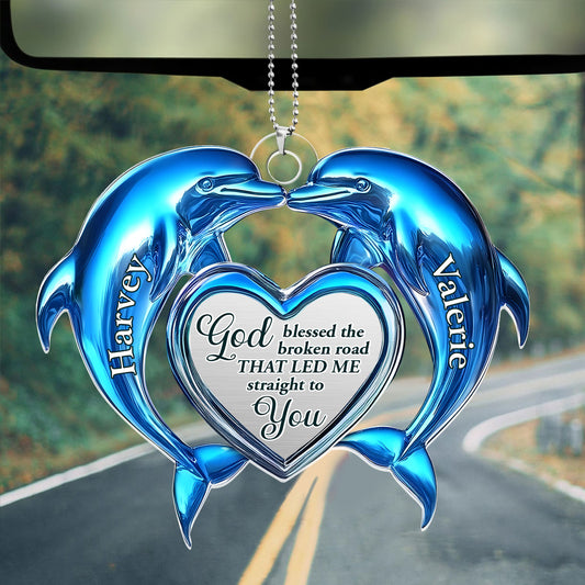 Blessed Journey Dolphin Couple - Personalized Car Acrylic Hanging Ornament