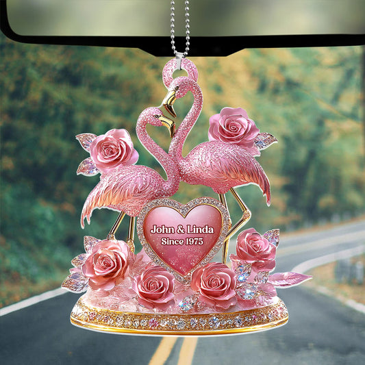 Together In Pink Romantic Flamingo Display - Personalized Car Acrylic Hanging Ornament