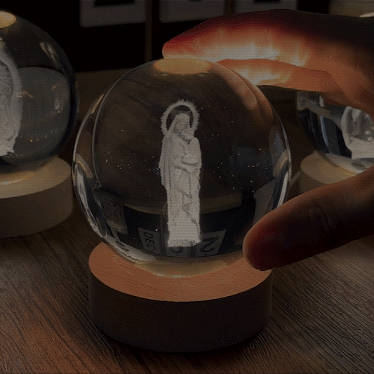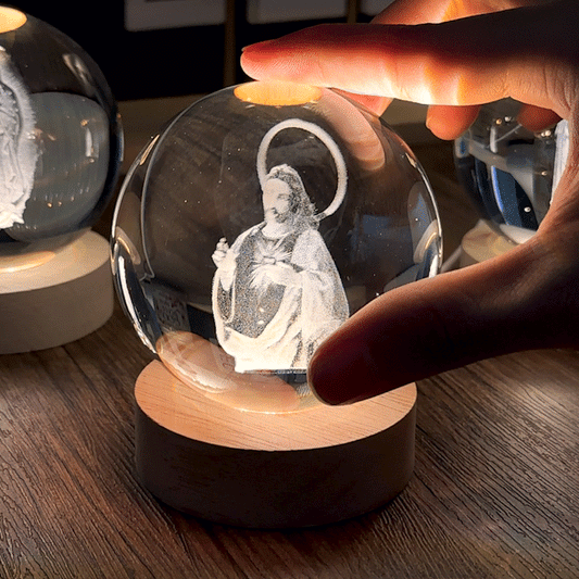 3D Jesus Engraved Wooden Light Base Crystal Globe