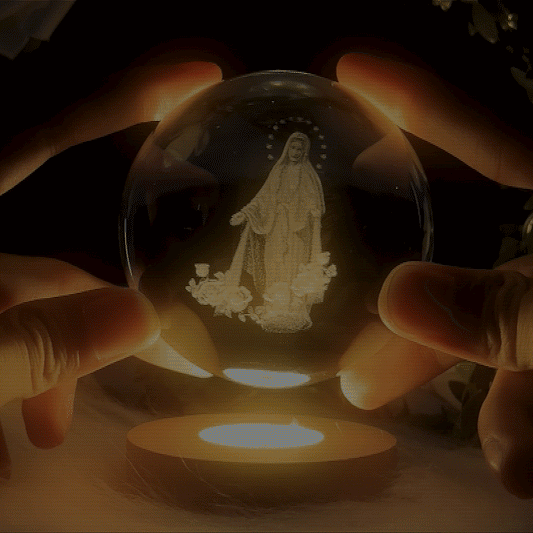 3D The Virgin Mary Wooden Light Base Crystal Globe