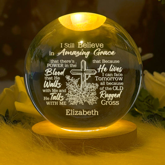 Amazing Grace - Personalized Wooden Base Crystal Lamp
