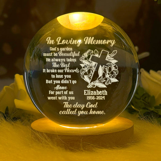 The Day God Called You Home - Personalized Wooden Base Crystal Lamp