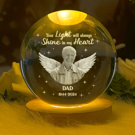 Your Light Will Always Shine In My Heart - Personalized Wooden Base Crystal Lamp