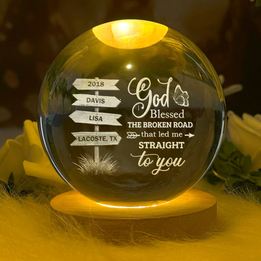 God Blessed The Broken Road - Personalized Wooden Base Crystal Lamp