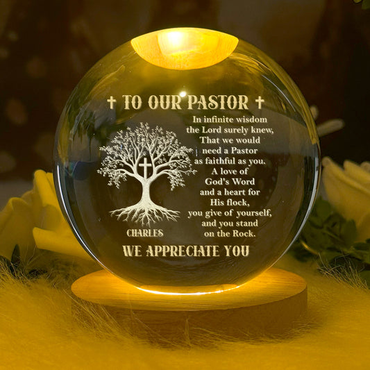 To Our Pastor - Personalized Wooden Base Crystal Lamp