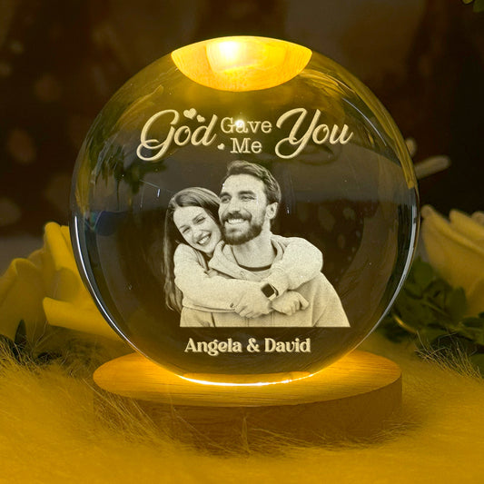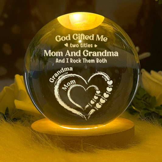 God Gifted Me Two Titles - Personalized Wooden Base Crystal Lamp