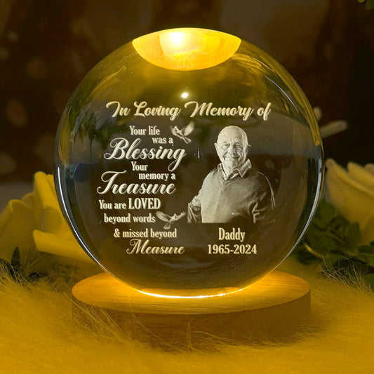 Memorial Your Life Was A Blessing - Personalized Wooden Base Crystal Lamp