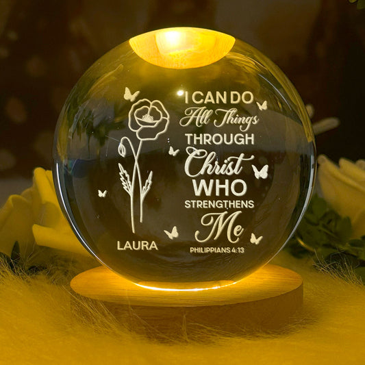 I Can Do All Things Through Christ - Personalized Wooden Base Crystal Lamp