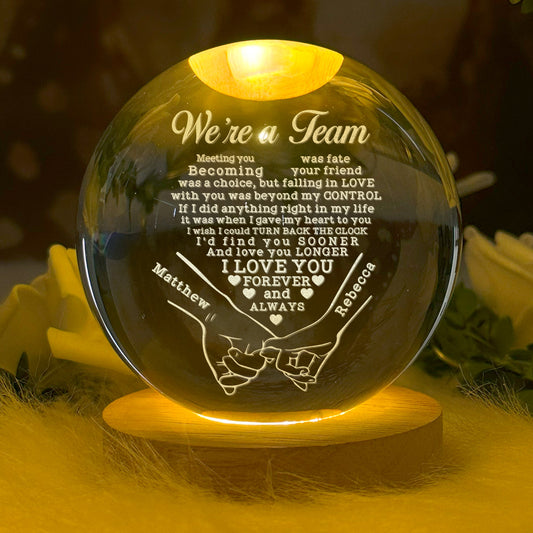 We're A Team - Personalized Wooden Base Crystal Lamp