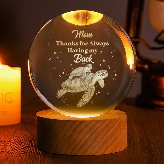 Mom Always Having My Back - Personalized Wooden Base Crystal Lamp