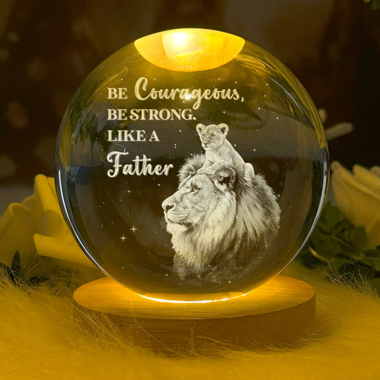 Be Courageous Like A Father - Wooden Base Crystal Lamp