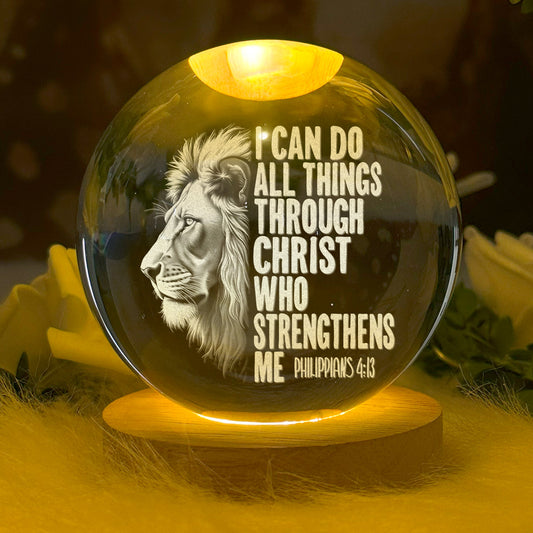 I Can Do All Things Through Christ - Wooden Base Crystal Lamp