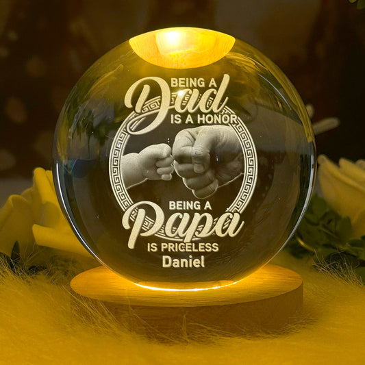 Being Papa Is Priceless - Personalized Wooden Base Crystal Lamp