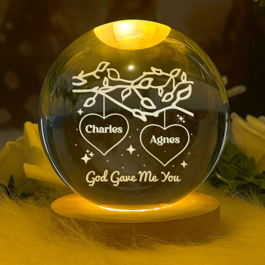 God Gave Me You - Personalized Wooden Base Crystal Lamp