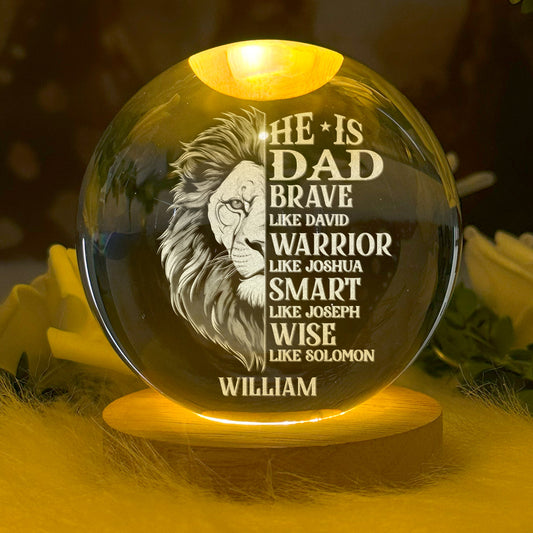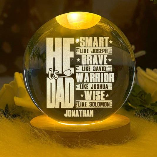 He Is Dad - Personalized Wooden Base Crystal Lamp
