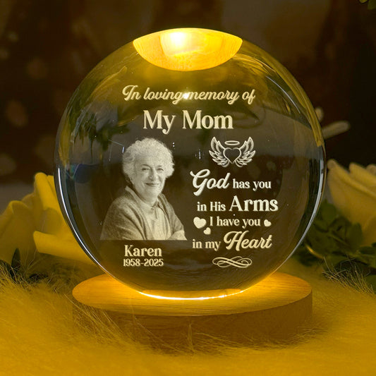 God Has You In His Arms - Personalized Wooden Base Crystal Lamp