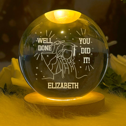 Well Done My Dear - Personalized Wooden Base Crystal Lamp