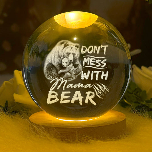 Don't Mess With Mama Bear - Wooden Base Crystal Lamp