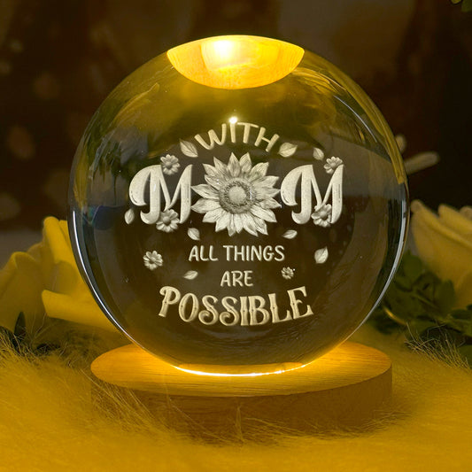 With Mom All Things Are Possible - Wooden Base Crystal Lamp
