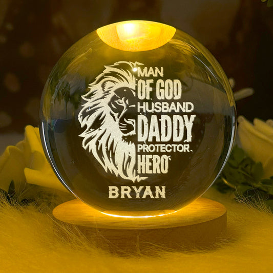 Dad Man Of God - Personalized Wooden Base Crystal Lamp