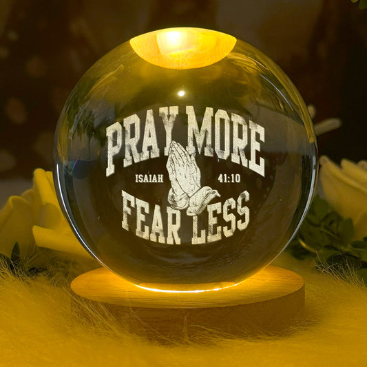 Pray More Fear Less - Wooden Base Crystal Lamp