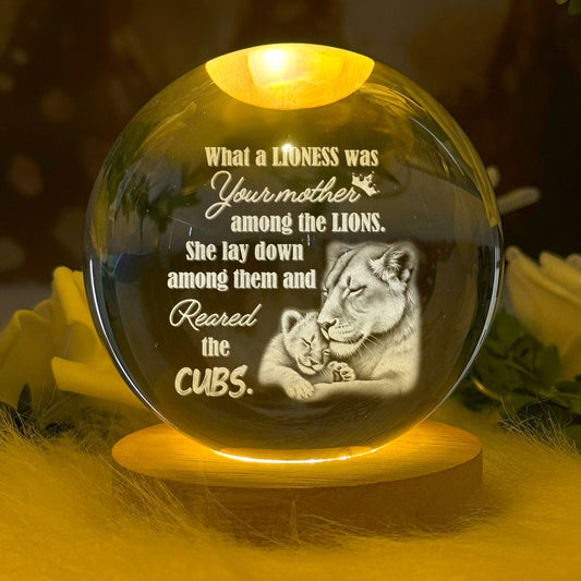 What A Lioness Was Your Mother - Wooden Base Crystal Lamp