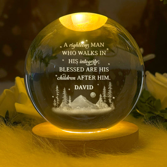 The Righteous Man Walks In Integrity - Personalized Wooden Base Crystal Lamp