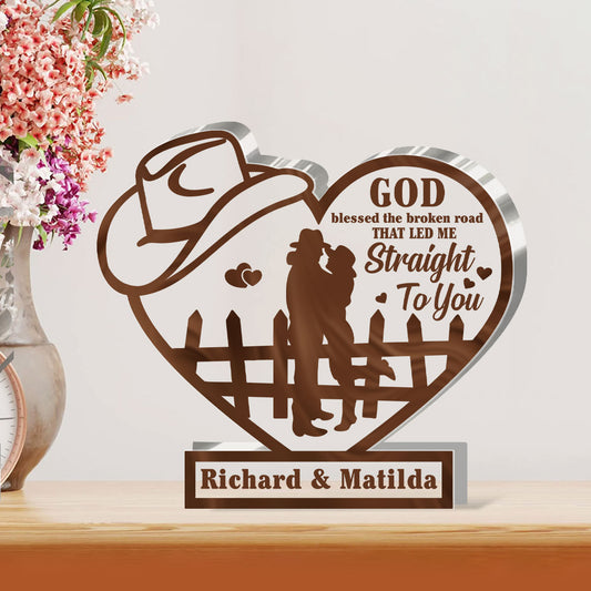 God Blessed The Broken Road Country Vibe - Personalized Custom Shaped Squared Acrylic Plaque