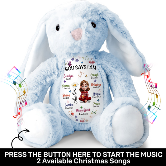 Kid Birth Flower God Says I Am - Personalized Stuffed Bunny