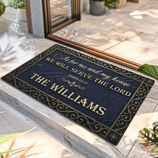 As For Me And My House We Will Serve The Lord - Personalized Doormat