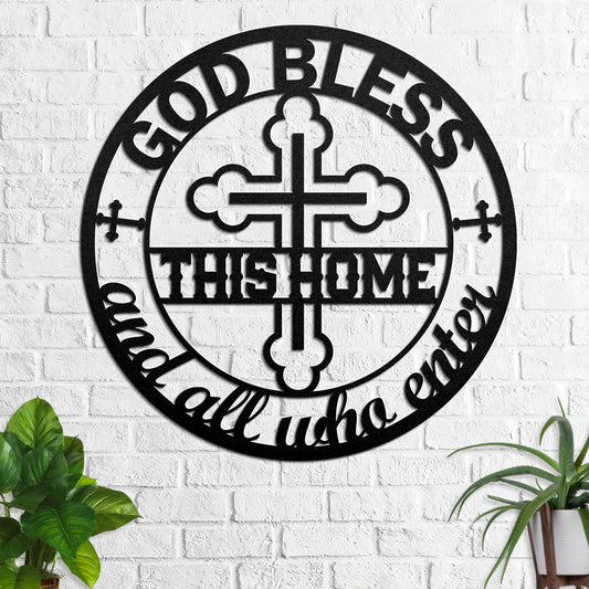 God Bless This Home And All Who Enter - Metal Wall Art Sign