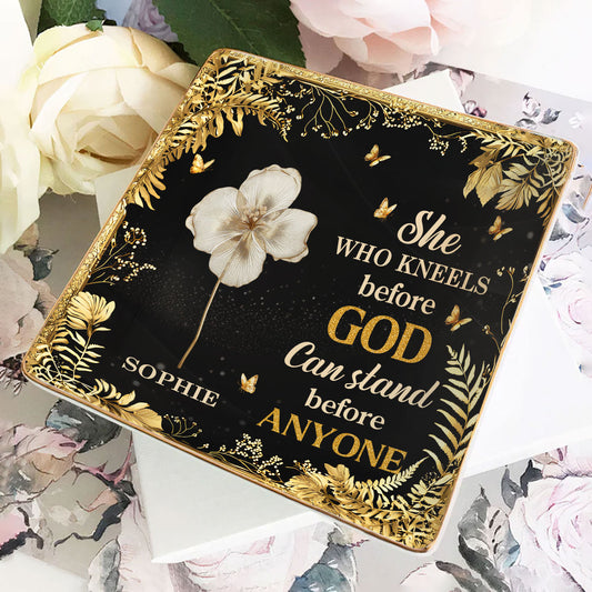 She Kneels Before God - Personalized Ceramic Ring Dish Square