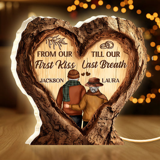 From Our First Kiss To Our Last Breath Love Journey Book - Personalized 2-Layer Wood Plaque With Flat Base
