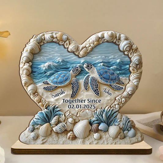 Forever By The Sea - Personalized 2-Layer Wood Plaque With Flat Base