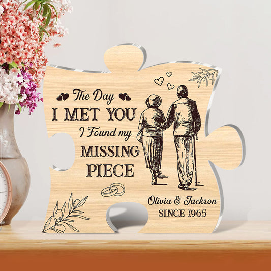 The Day I Met You I Found My Missing Piece - Personalized Custom Shaped Acrylic Plaque