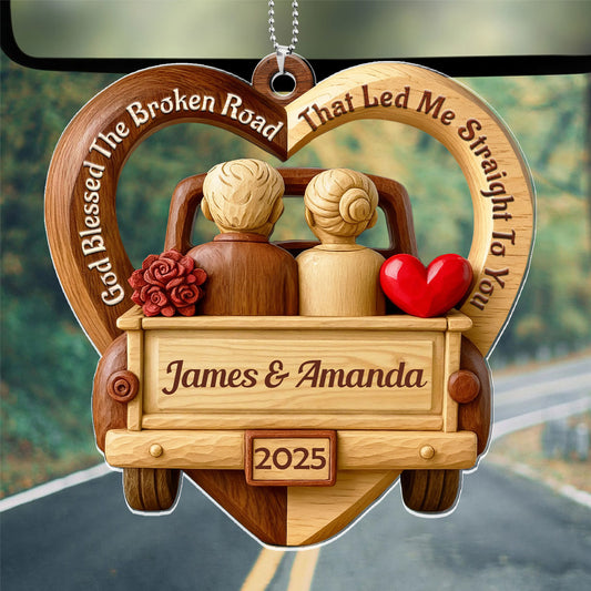 God Blessed The Broken Road That Led Me Straight To You - Personalized Car Acrylic Hanging Ornament