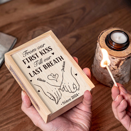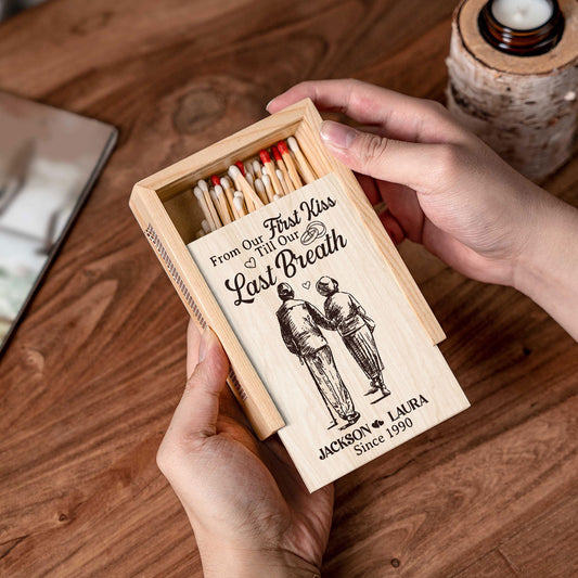 From Our First Kiss Till Our Last Breath - Personalized Wooden Matchbox