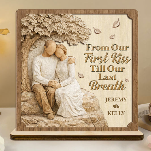 From Our First Kiss Till Our Last Breath - Personalized 2-Layer Wood Plaque With Flat Base