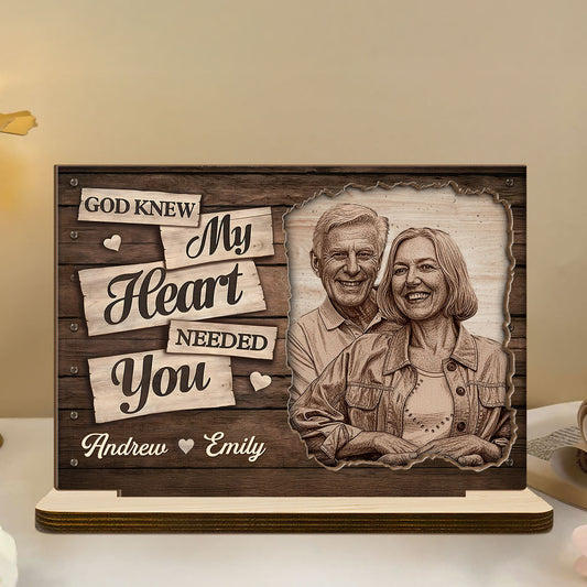 God Knew My Heart Needed You - Personalized 2-Layer Wood Plaque With Flat Base