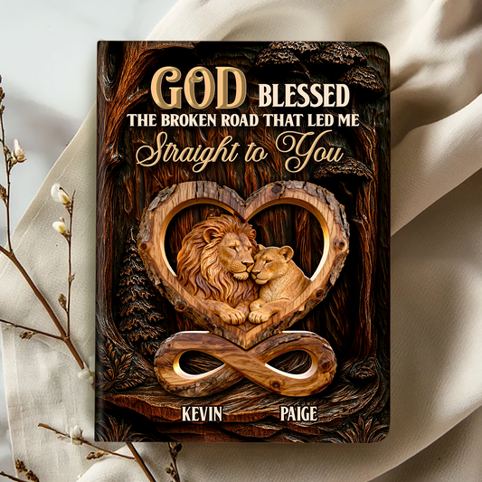 God Blessed The Broken Road That Led Me Straight To You - Personalized Leather Cover Notebook