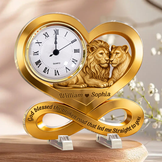 God Blessed The Broken Road That Led Me Straight To You - Personalized Acrylic Desk Clock