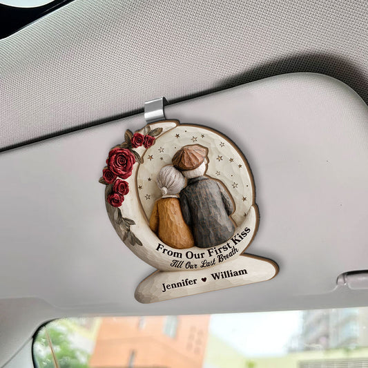 Eternal Embrace On The Crescent Moon - Personalized Car Visor Clip