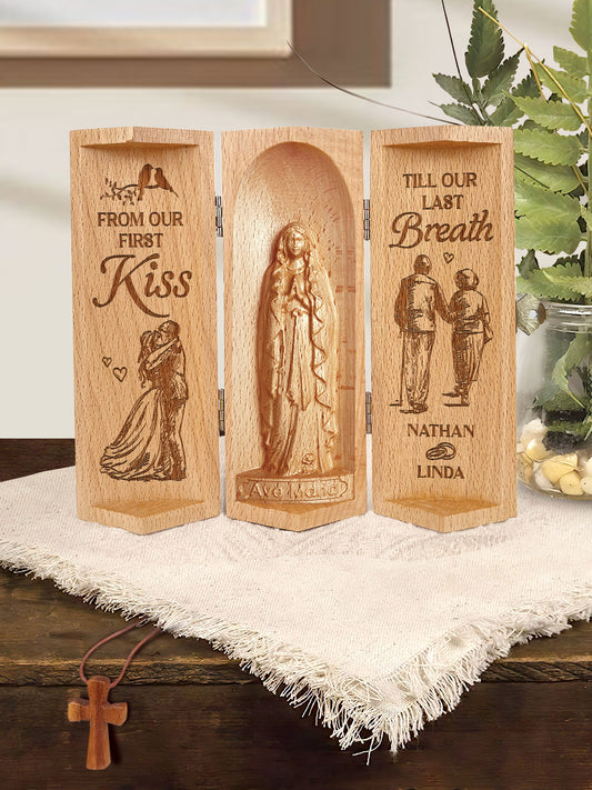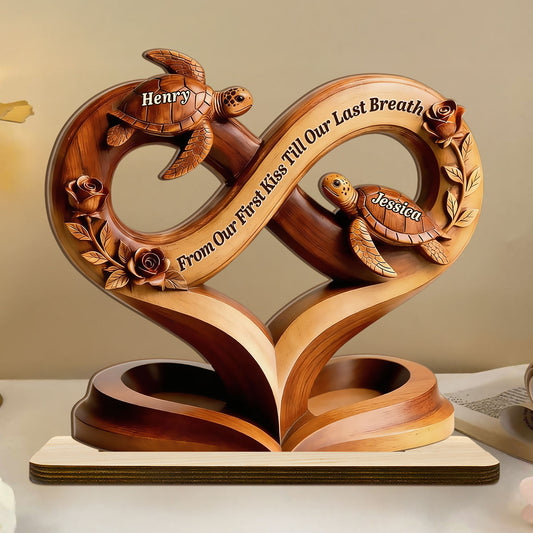 From Our First Kiss Till Our Last Breath - Personalized Wooden Cylinder Sculpture